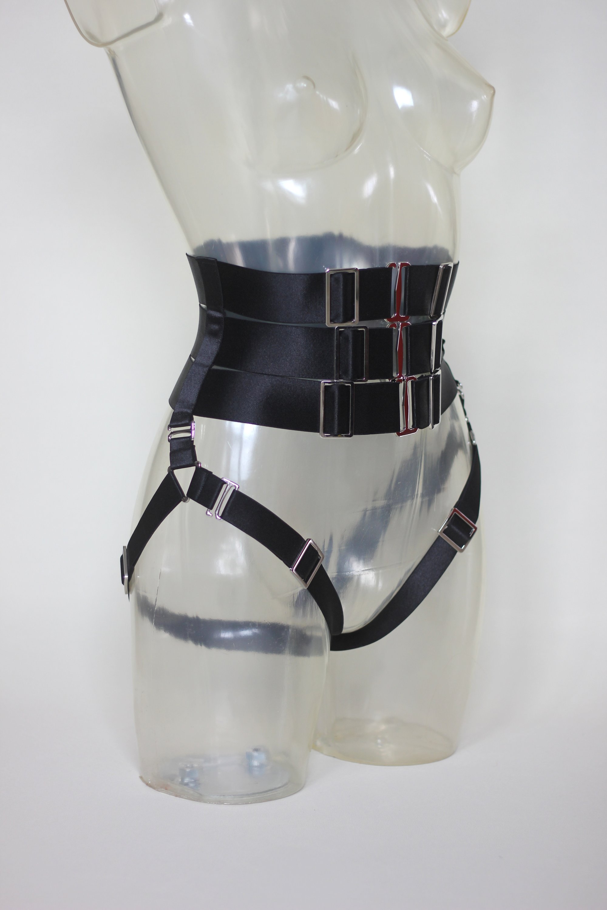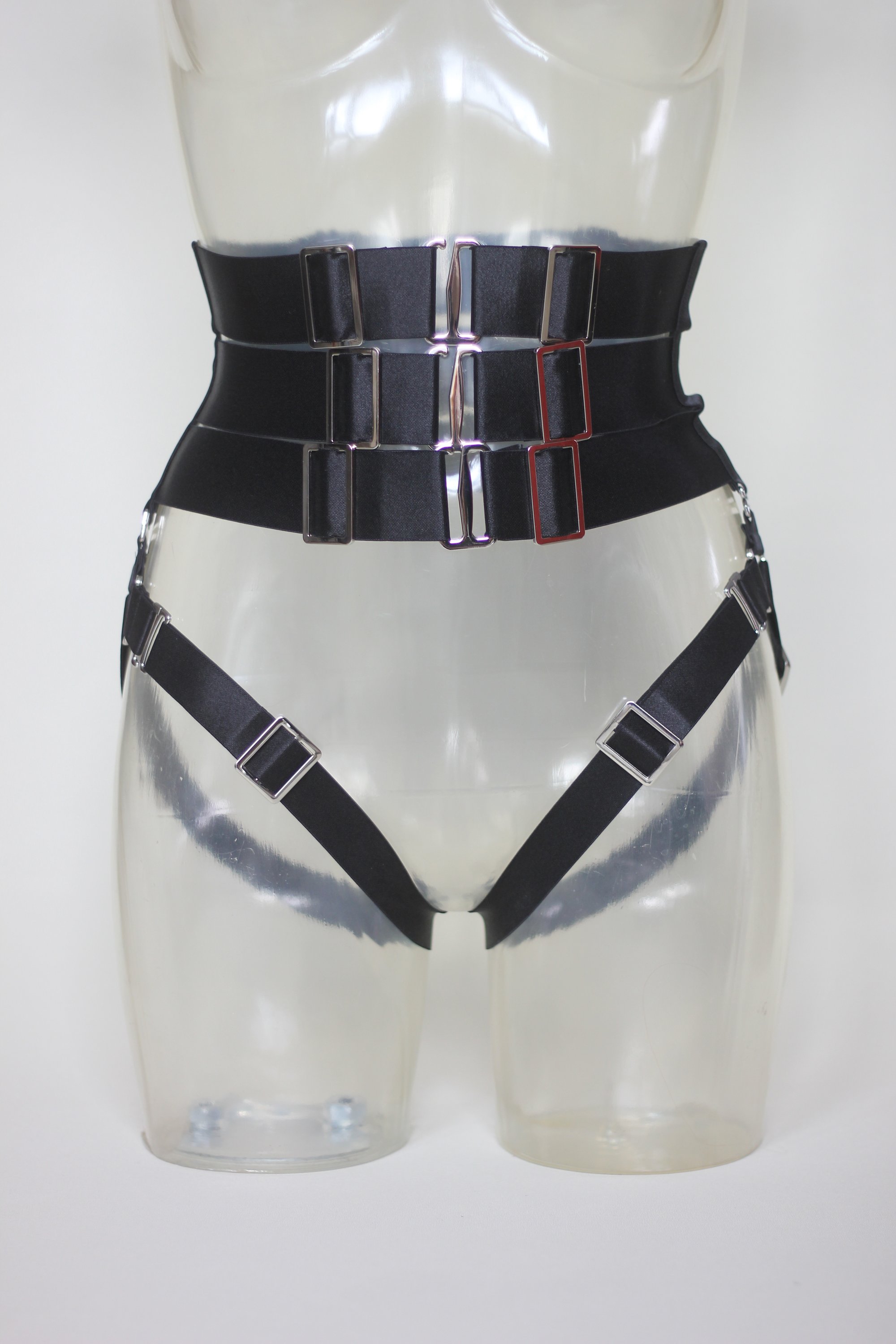 The 3-row Satin Elastic Waist Cincher features heavy-duty hooks and sliders for a snug yet comfortable fit around the waist. The detachable leg garters enhance and shape your legs and butt, offering versatile styling options. Designed for comfort, the cincher is fully adjustable to ensure a perfect fit.